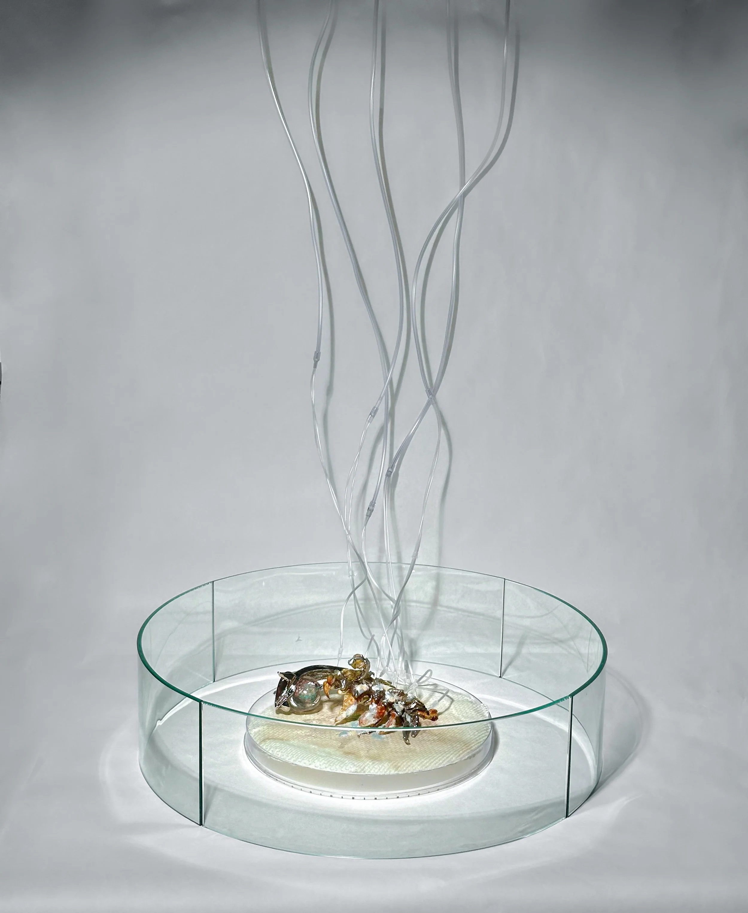 This aims to mirror online human communication with technology in real life, including interactions with AI and robots. All these technologies require personal data or information input to personalize and better assist the wearer. The plant device, alive in nature, establishes a symbiotic relationship with the human host. The longer the wearer transmits thoughts, the better the plant understands, creating a personalized style of communication based on the user's preferences and personality.